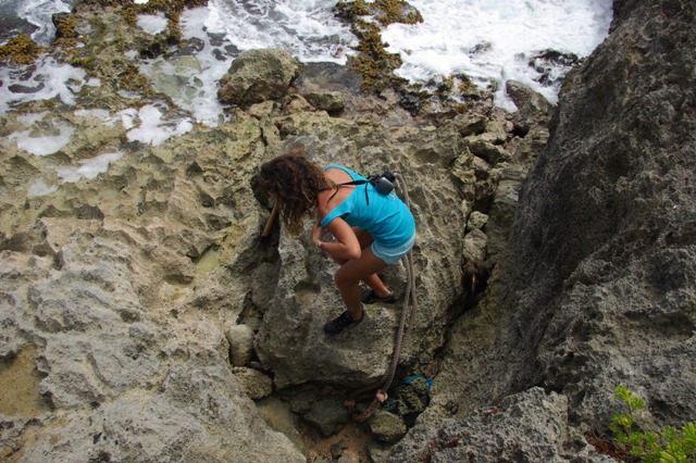 Allez, direction la plage, pour une marche le long d'un sentier côtier partant de Capesterre, et se déroulant sur 6 km. Toutefois, nous avons rapidement quitté le chemin tracé, préférant longer la plage, crapahuter sur les rochers, et sentir les embruns nous caresser le visage.